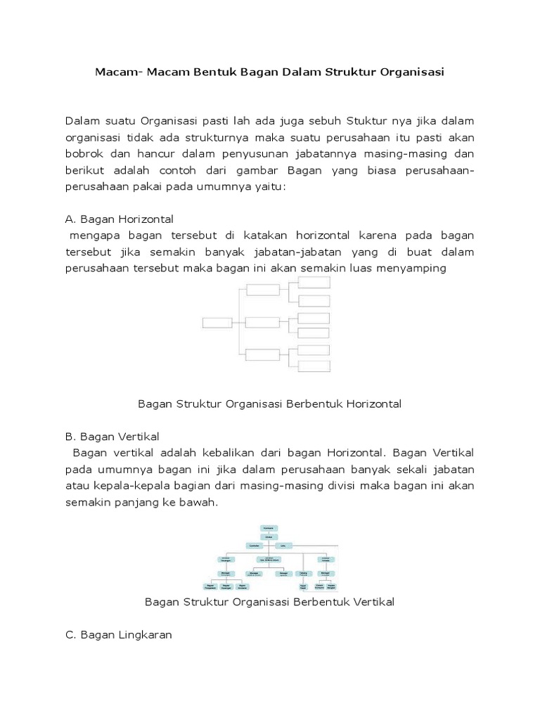 Macam Macam Bentuk Bagan Dalam Struktur Organisasi
