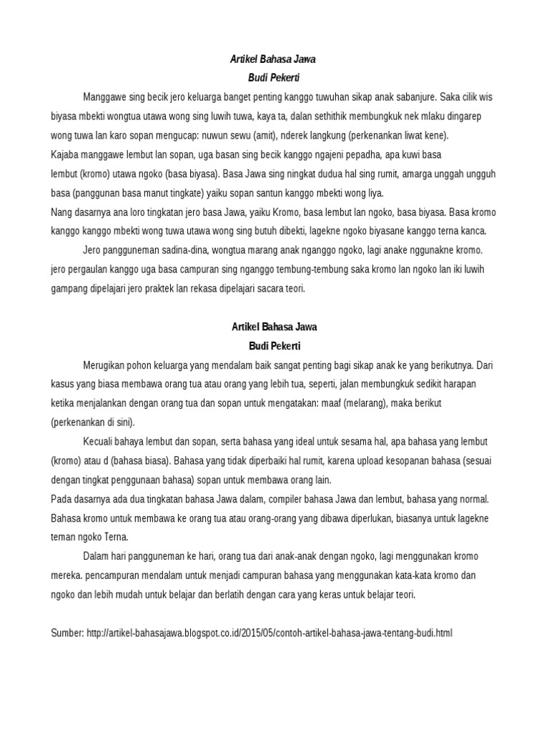 Contoh Artikel Dalam Bahasa Jawa Contoh Rei