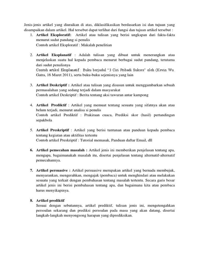 Artikel Pengertian Jenis Jenis Artikel Contoh Contoh