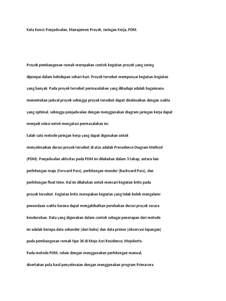 Contoh Penjadwalan Proyek Referensi Manajemen Operasi