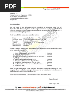 Contoh Surat Lamaran Kerja Cover Letter Dalam Bahasa