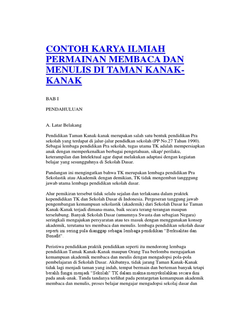 Doc Contoh Karya Ilmiah Permainan Membaca Dan Menulis Di
