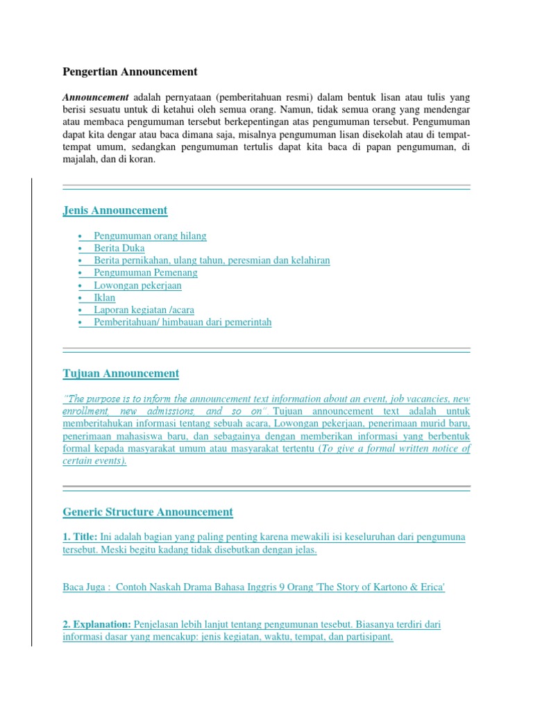 Pengertian Announcement Ciri Ciri Tujuan Jenis Struktur