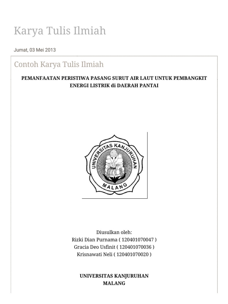 Contoh Karya Ilmiah Yang Lengkap Simak Gambar Berikut