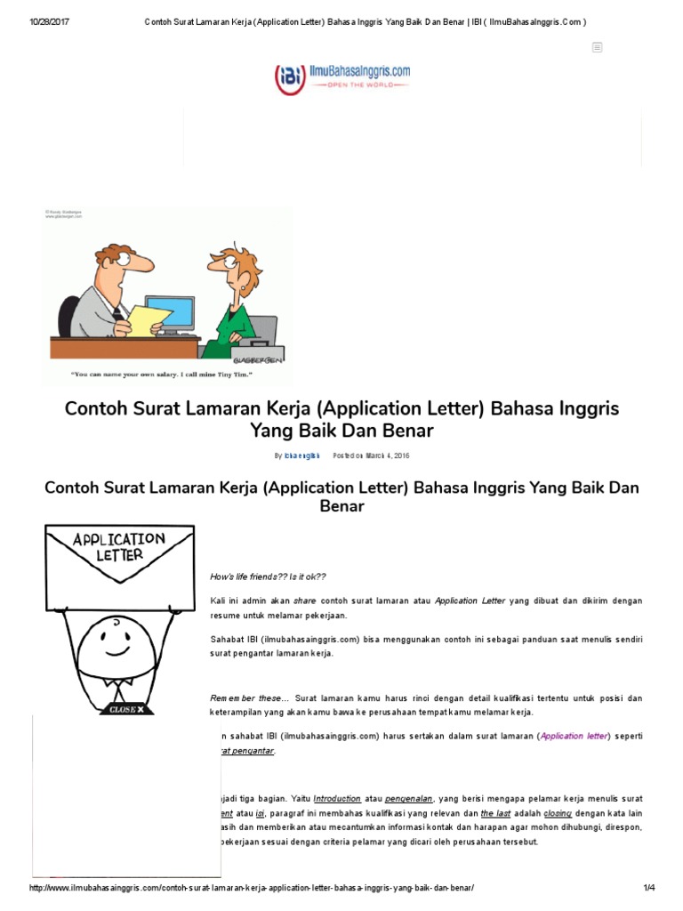 Contoh Lamaran Kerja Dalam Bahasa Inggris Dan Terjemahannya