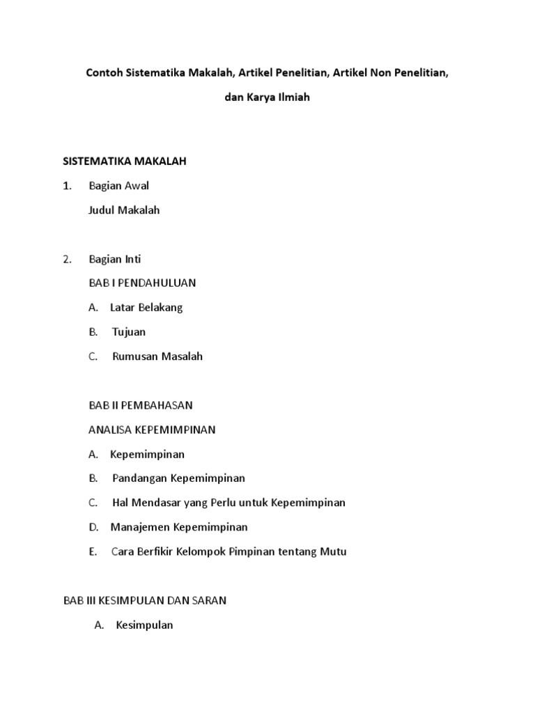 Contoh Sistematika Karya Ilmiah Makalah Dan Artikel Non