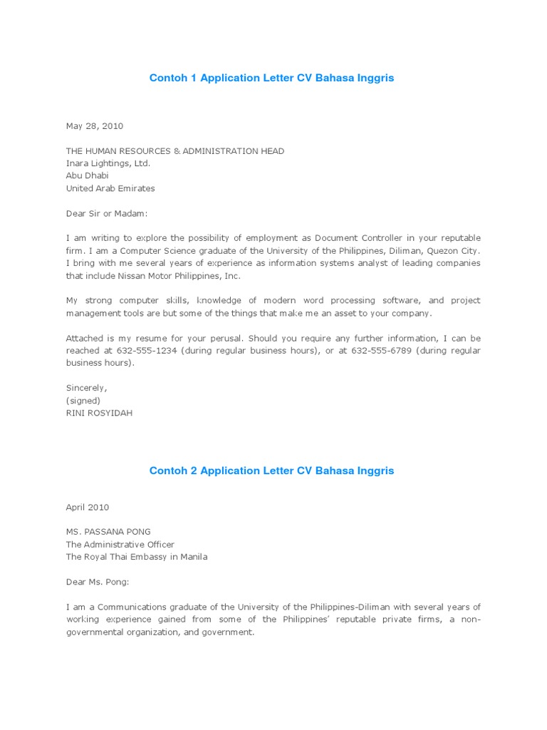 Application Letter Cv Bahasa Inggris Resume Engineering