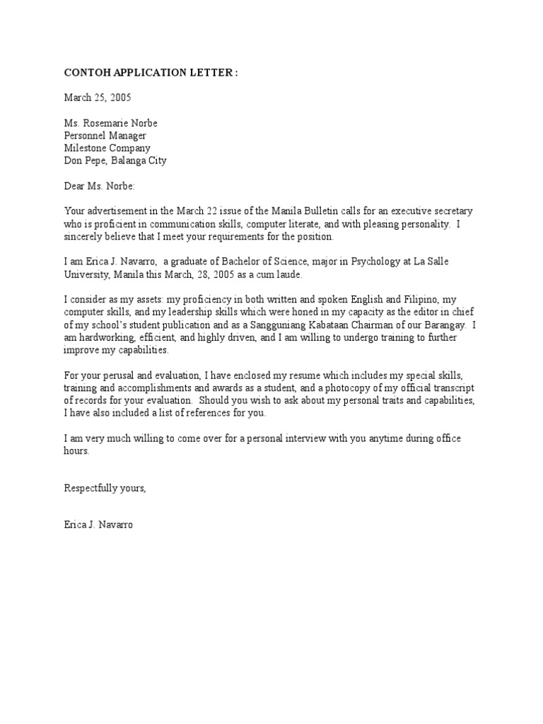 Contoh Application Letter Fresh Graduate Yang Bagus Bahasa