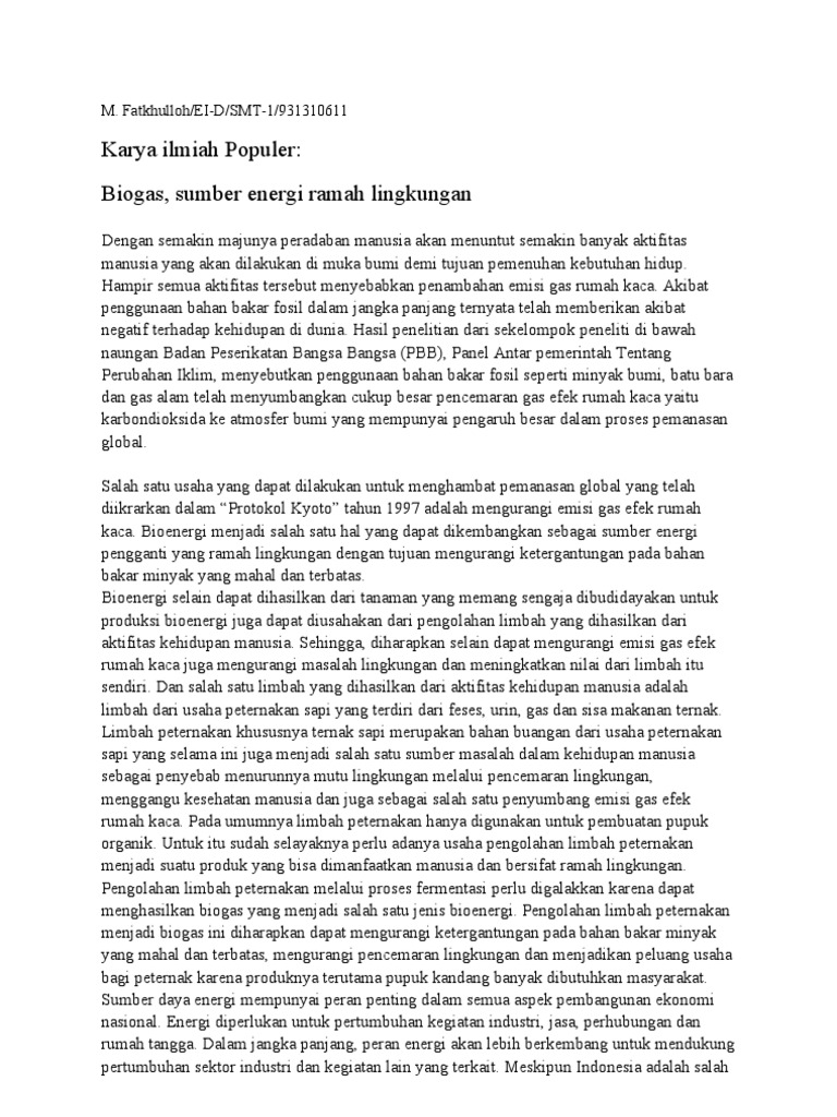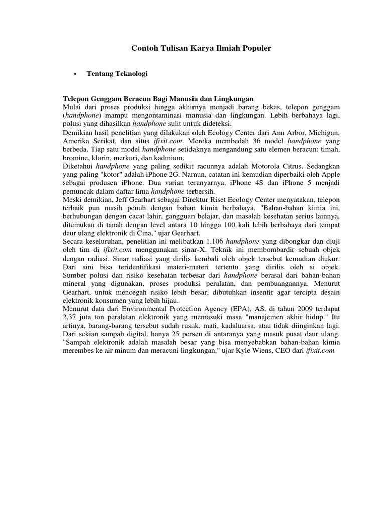 Contoh Karya Ilmiah Populer Terlengkap Badrul Mozila
