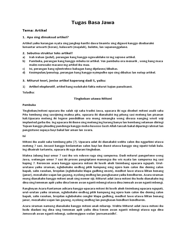 Contoh Artikel Dalam Bahasa Jawa
