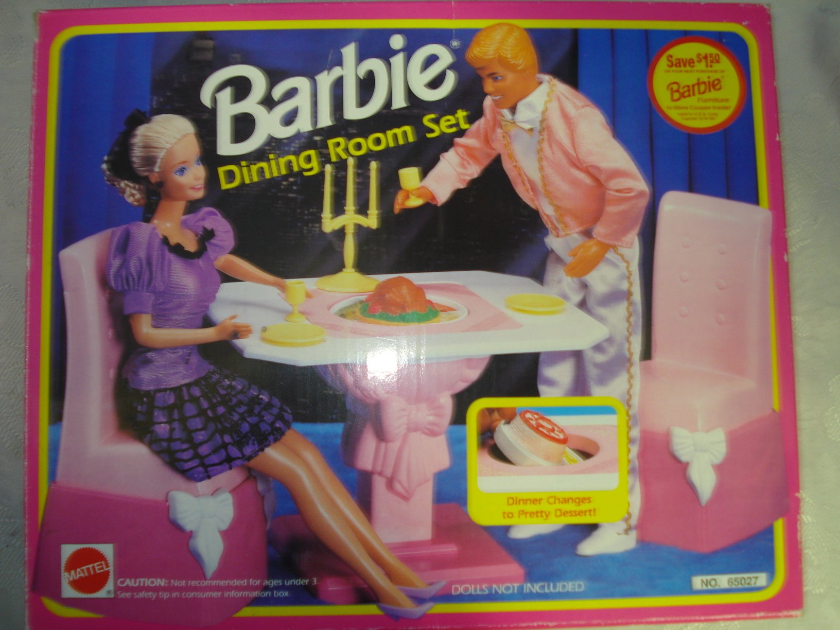 Barbie Dining Room Set : Barbie Dinner Date Night Dining Room Set And Doll Barbiedb Com / This barbie 3 story dreamhouse portable doll house is cute, modern, and holds fun surprises.. Allowing your kids to create their own scenarios and bringing their own dolls to the table gives young children the ability to use their. Gloria barbie size dollhouse furniture home nursery set. 7 ct plastic canvas pdf 2 seperate pdfs for each pattern. The beautiful round pedestal table is distress painted Collect all 3 new barbie furniture collection sets.